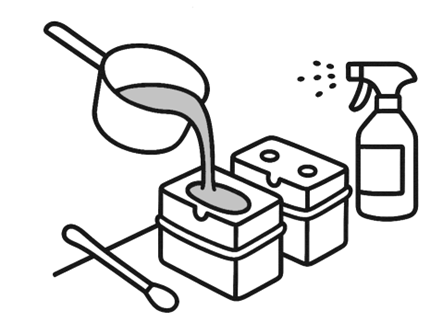 ● Oiling moulds and spraying alcohol are crucial for quality results.